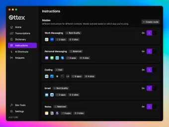 Ottexは、アプリやプラットフォーム全体でシームレスに統合される音声からテキストへのAIオートメーションソフトウェアとして際立っています。アプリごとのAIモード、カスタムショートカット、会議の録音などの機能が生産性を向上させます。しかし、新しいユーザーは、最初に最適なパフォーマンスのためにAPIキーやパーソナライズされたモードを設定する際にわずかな学習曲線に直面することがあります。